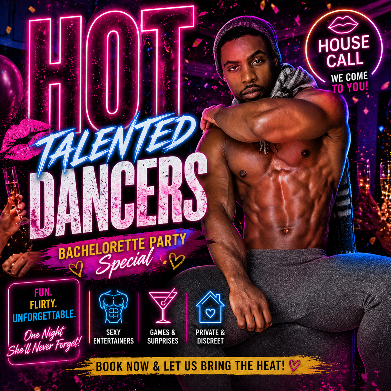 Hire Some Of The Hottest Professional Private Strippers Available. Male And Female Strippers Hot Exotic Dancers For All Of Your Events and Private Parties!